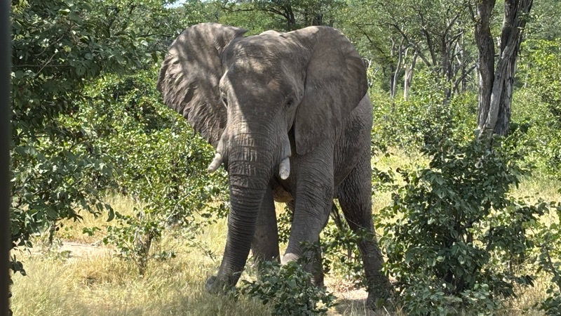 On the way back to camp for lunch, a large bull elephant greeted us just outside the camp, and he was kind enough to pose politely for our photos before moving on.